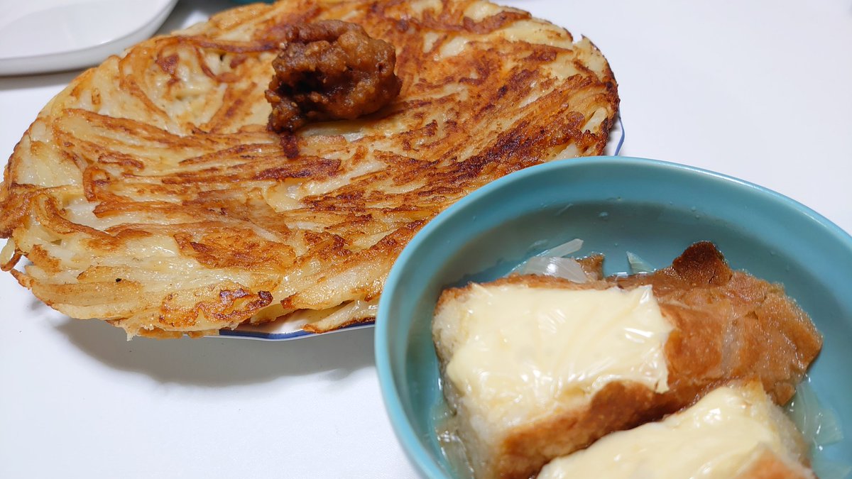 今日の作ったりゅん。ガレットチーズ入り版とオニオングラタンスープ。とにかく暑っつい!